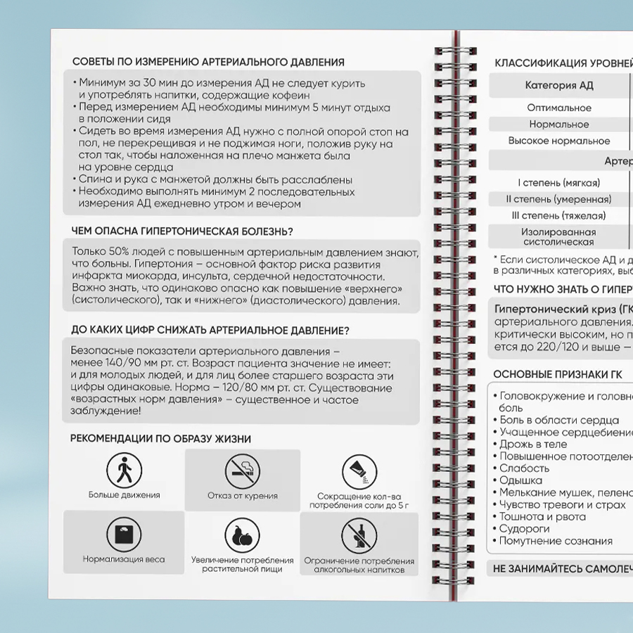 Дневник контроля давления и пульса — это стильный и умный аксессуар для тех, кто подходит к своему здоровью так же системно, как к рабочим проектам. Он сочетает в себе чёткую организацию, практическую пользу и элегантный дизайн, превращая ежедневный мониторинг из рутины в осознанный ритуал заботы о себе.