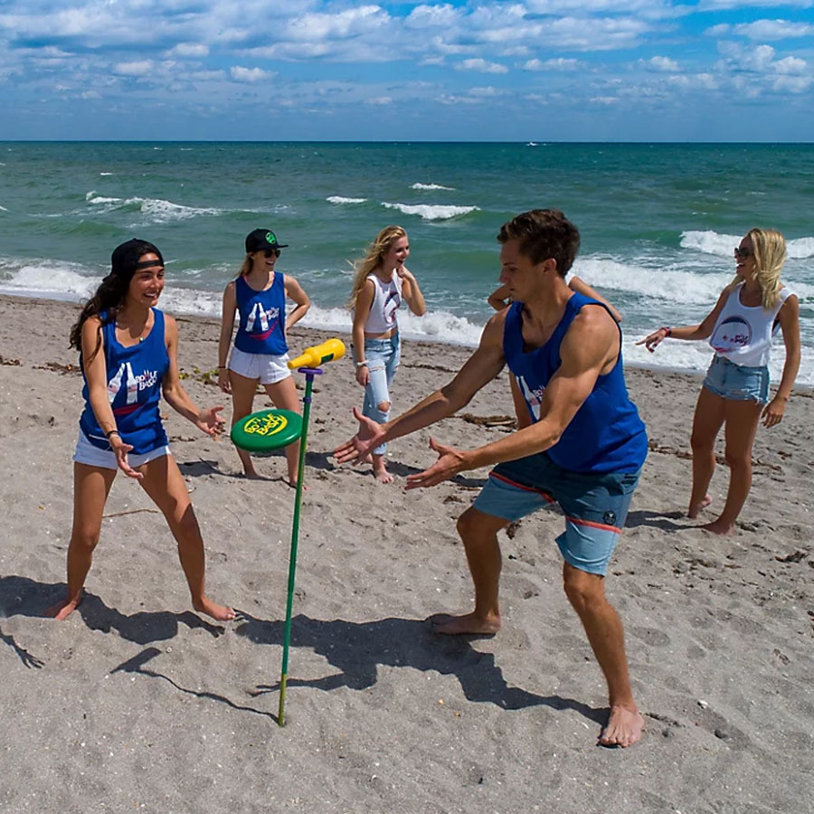 Динамичное уличное развлечение на меткость, реакцию и командный азарт. Участники бросают мягкий диск, стараясь сбить бутылку со стойки раньше соперников. Простые правила позволяют быстро включиться в игру, а соревновательный формат делает её отличным выбором для пикников, вечеринок, фестивалей и корпоративных мероприятий.