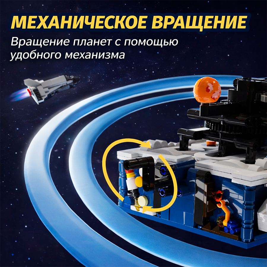 Конструктор «Солнечная система» с вращающимися планетами — это увлекательный набор, который помогает детям познакомиться с устройством космоса в игровом формате. Во время сборки ребёнок создаёт модель с планетами, которые вращаются вокруг солнца, а световые эффекты делают результат ещё более впечатляющим и наглядным.