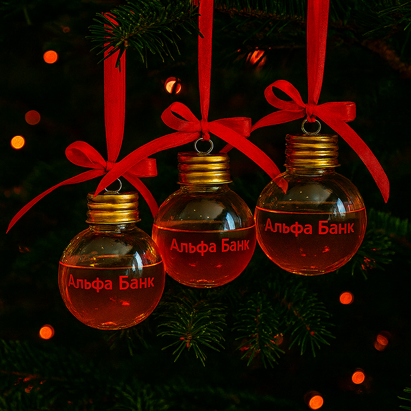 Корпоративные алкошарики для елки – это не только оригинальные украшения, но и отличная возможность произвести впечатление на партнеров, клиентов или коллег. Каждый шар выполнен из прочного пластика, что обеспечивает долговечность их использования. Внутри аксессуары полые, в дальнейшем их можно наполнить любыми напитками. На винтовых крышках имеются красивые ленточки за которые шарик удобно подвешивать на елку.