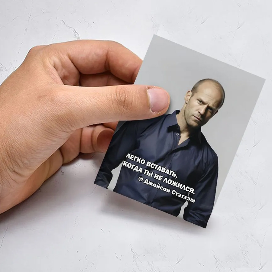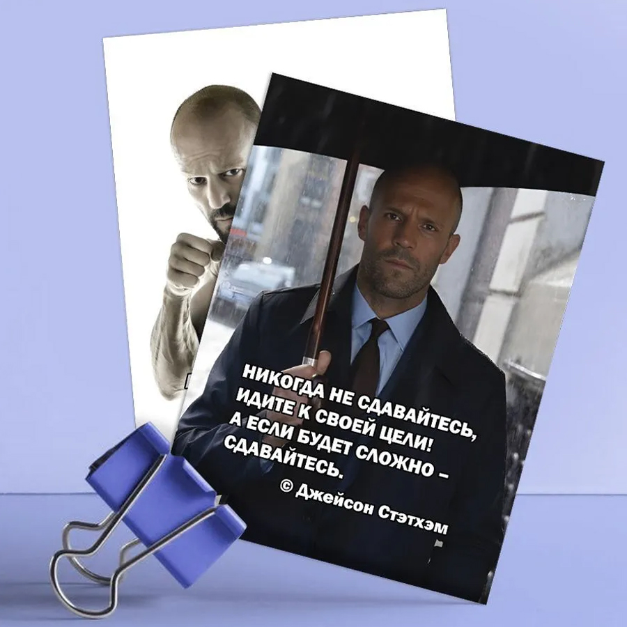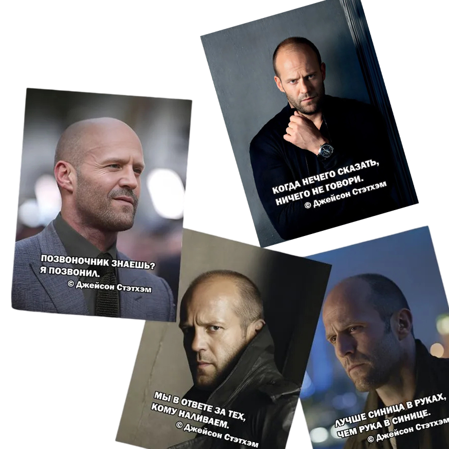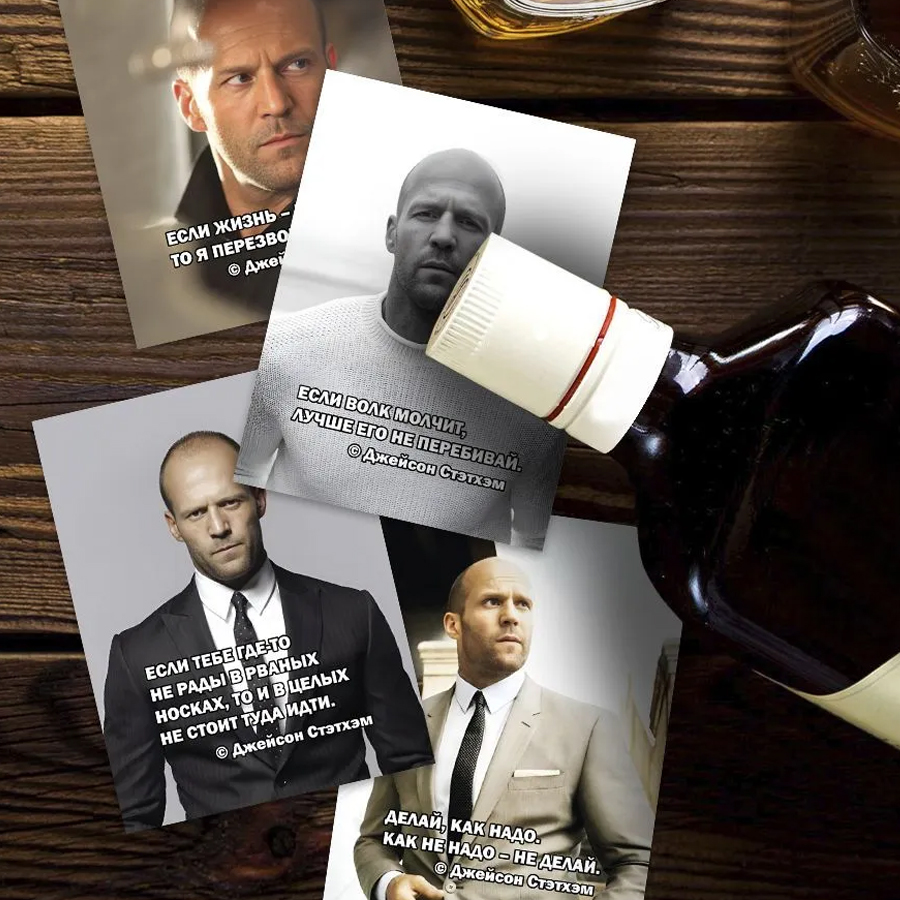 Набор из 32 мини-открыток с цитатами Джейсона Стэтхема — это порция фирменного юмора и сарказма для тех, кто ценит острые шутки и самоиронию. Используйте их нестандартно: как дерзкую закладку, мотивационную карточку под чехлом телефона или как неожиданный способ выразить другу то, что словами передать сложно.
