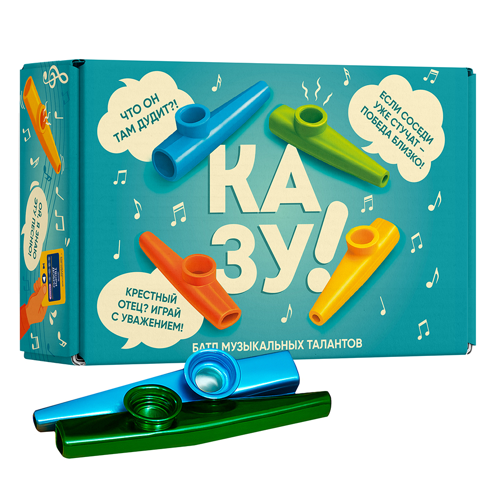 Как это работает: возьмите инструмент казу широкой стороной к губам и «промычите» мелодию без слов. Волшебная мембрана мгновенно трансформирует ваш голос в забавный, характерный «дудящий» звук. Никаких нот, сложных правил или вокальных данных – только интуиция, юмор и невероятные импровизации! Остальные игроки пытаются угадать песню, зарабатывают баллы и смеются до слез. Это шумно, просто и невероятно весело!