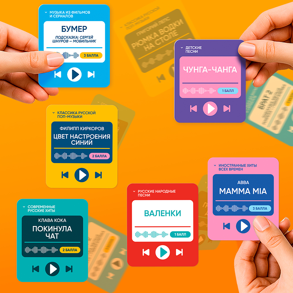 Мы адаптируем механику под вашу компанию: разместим ваш логотип на обратной стороне всех игровых карточек, создадим уникальные категории песен, отражающих специфику вашей компании, индустрии или даже внутренние корпоративные «мемы», включим эксклюзивное сообщение, поздравления или благодарности от руководства компании, оформим буклет с правилами игры в вашем корпоративном стиле, интегрируем отсылки к корпоративным ценностям, шуткам или достижениям, делающих правила игры еще более интересными. Нанесем ваш логотип, слоган или уникального идентификатор на каждом инструменте казу. Это обеспечивает прямую и постоянную видимость бренда во время каждого использования.