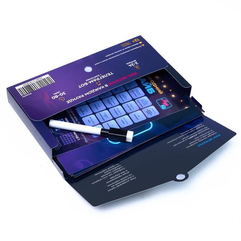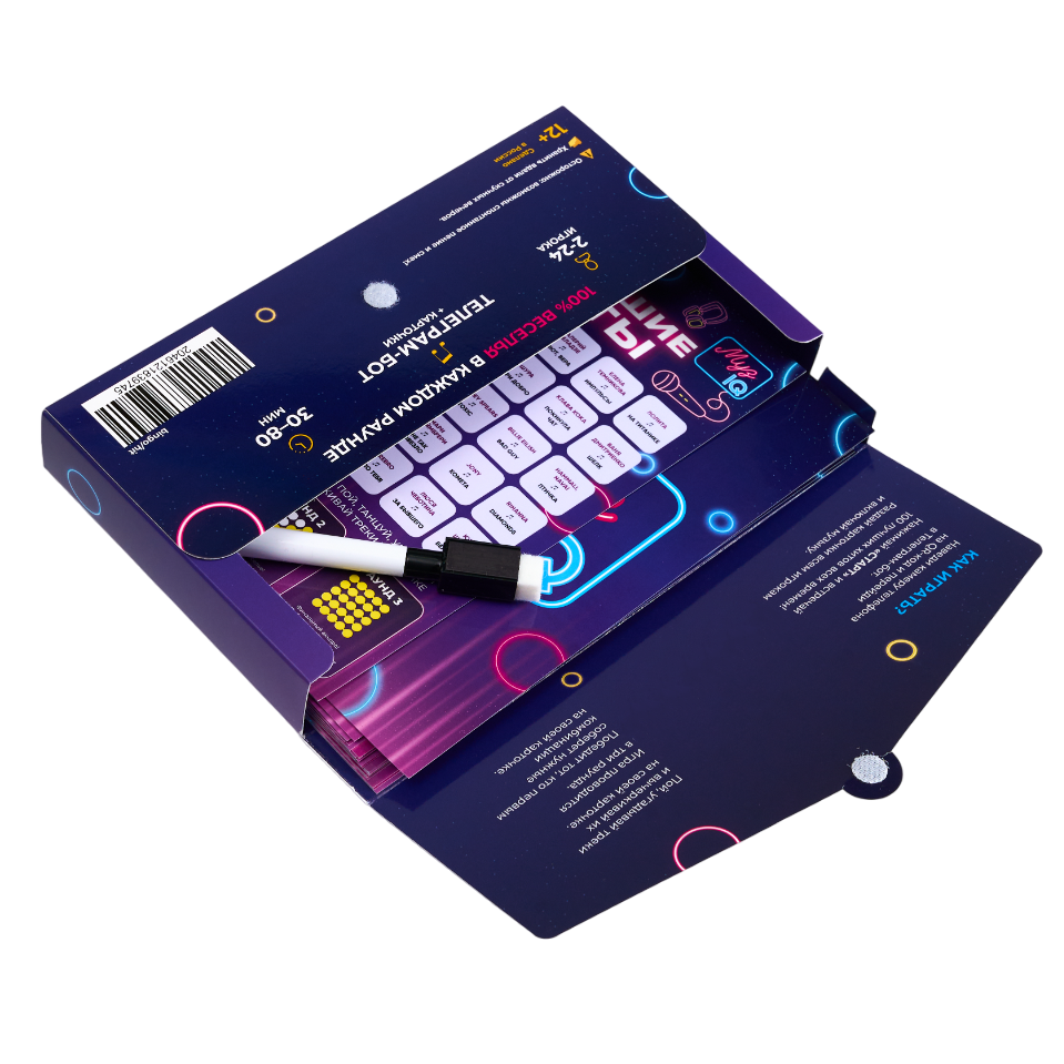 Мы предлагаем комплексные решения для нанесения вашей корпоративной символики: от индивидуального дизайна упаковки и игровых карточек до использования логотипа на элементах игры и даже на маркерах. Это не просто сувенир, а мощный инструмент для укрепления и продвижения вашего бренда.