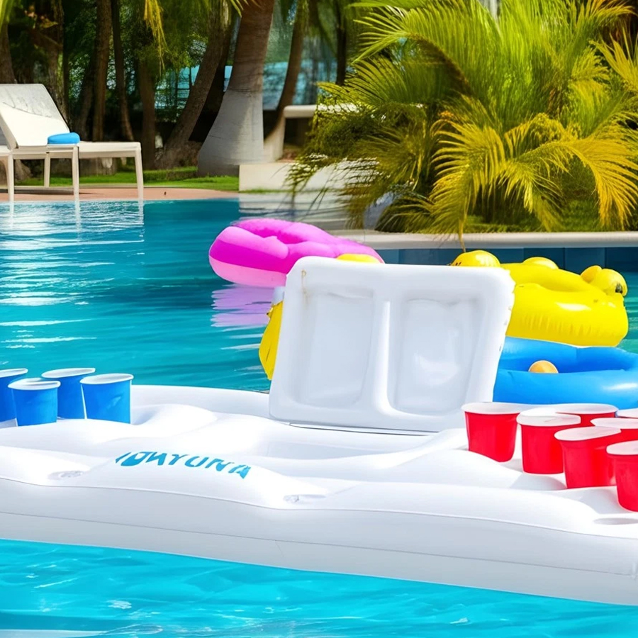 Функциональный аксессуар для отдыха на воде и проведения мероприятий. Конструкция обеспечивает удобное размещение напитков и аксессуаров прямо в воде.