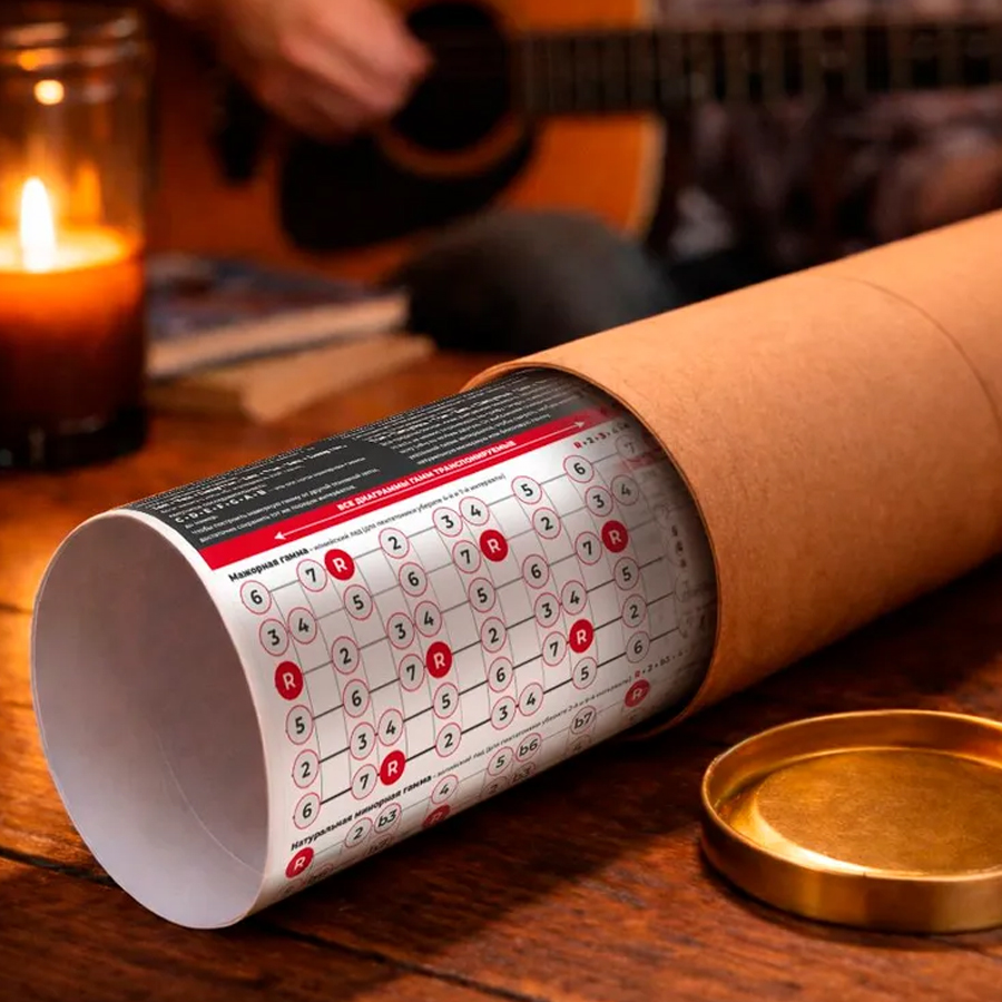 Плакат удобен для самостоятельных занятий и уроков — он всегда перед глазами и экономит время. Это практичный подарок гитаристу, который действительно используется. С опцией брендирования плакат становится корпоративным инструментом: мы наносим логотип или слоган. Плакат в фирменном стиле усиливает узнаваемость бренда и служит полезным напоминанием о вашем внимании к обучению и развитию.