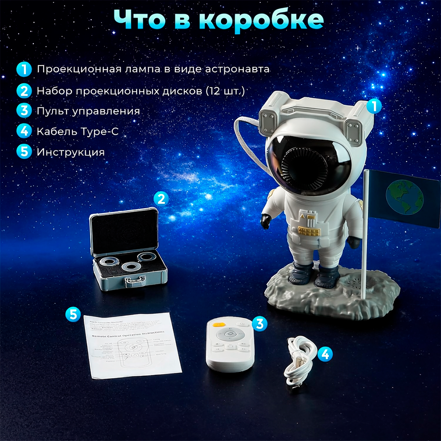 Проектор-астронавт с Bluetooth-колонкой