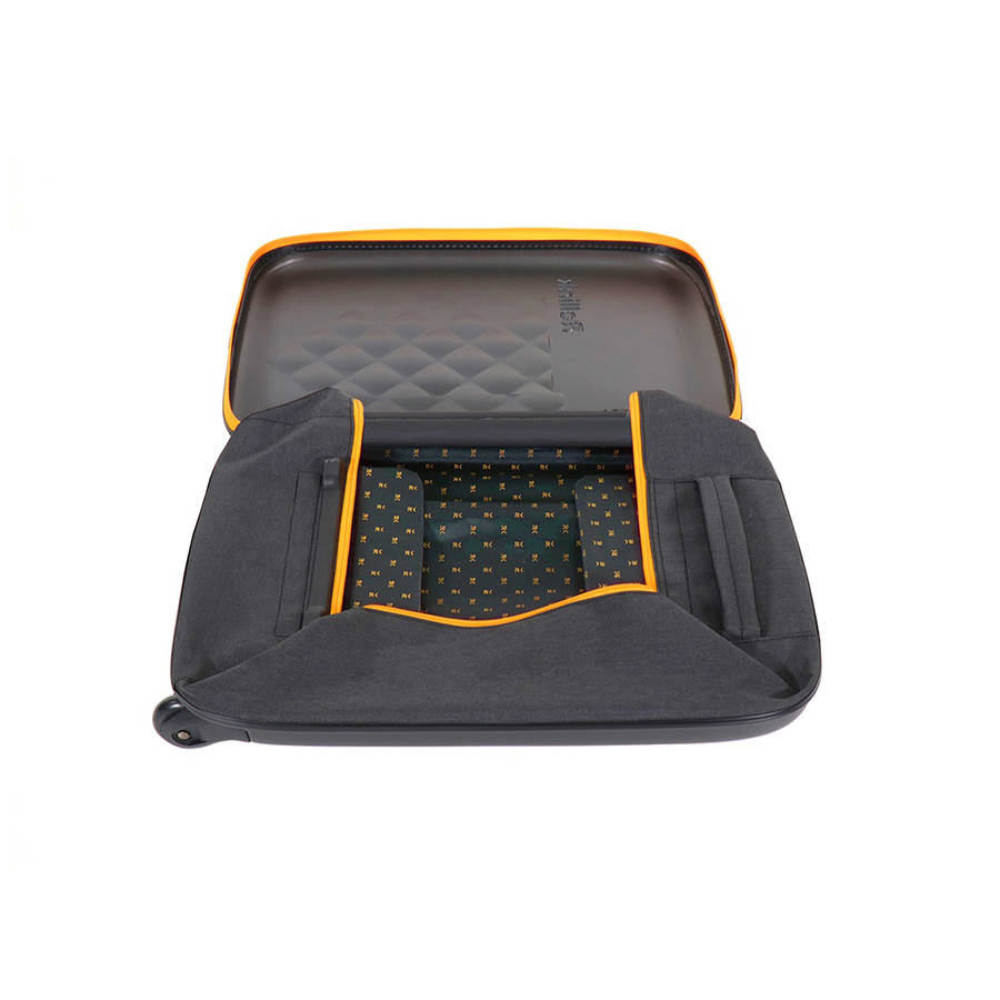 Жесткие панели из ударопрочного полипропилена защищают содержимое, а боковые элементы из полиэстера с водоотталкивающей пропиткой обеспечивают гибкость конструкции. Внутренние клапаны фиксируют форму, предусмотрен карман быстрого доступа и телескопическая ручка с несколькими уровнями регулировки. Возможна адаптация под корпоративные задачи: брендирование делает чемодан практичным и статусным подарком.
