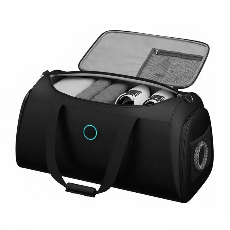 Спортивная сумка с ионизацией и устранением запахов – это современное решение для активных людей и корпоративных клиентов, ценящих комфорт и гигиену. Он оснащен разделением для сухого и влажного хранения одежды, что позволяет сохранять спортивную экипировку в порядке и свежести. Благодаря встроенной технологии стерилизации и дезодорации он эффективно борется с бактериями и неприятными запахами после тренировок.