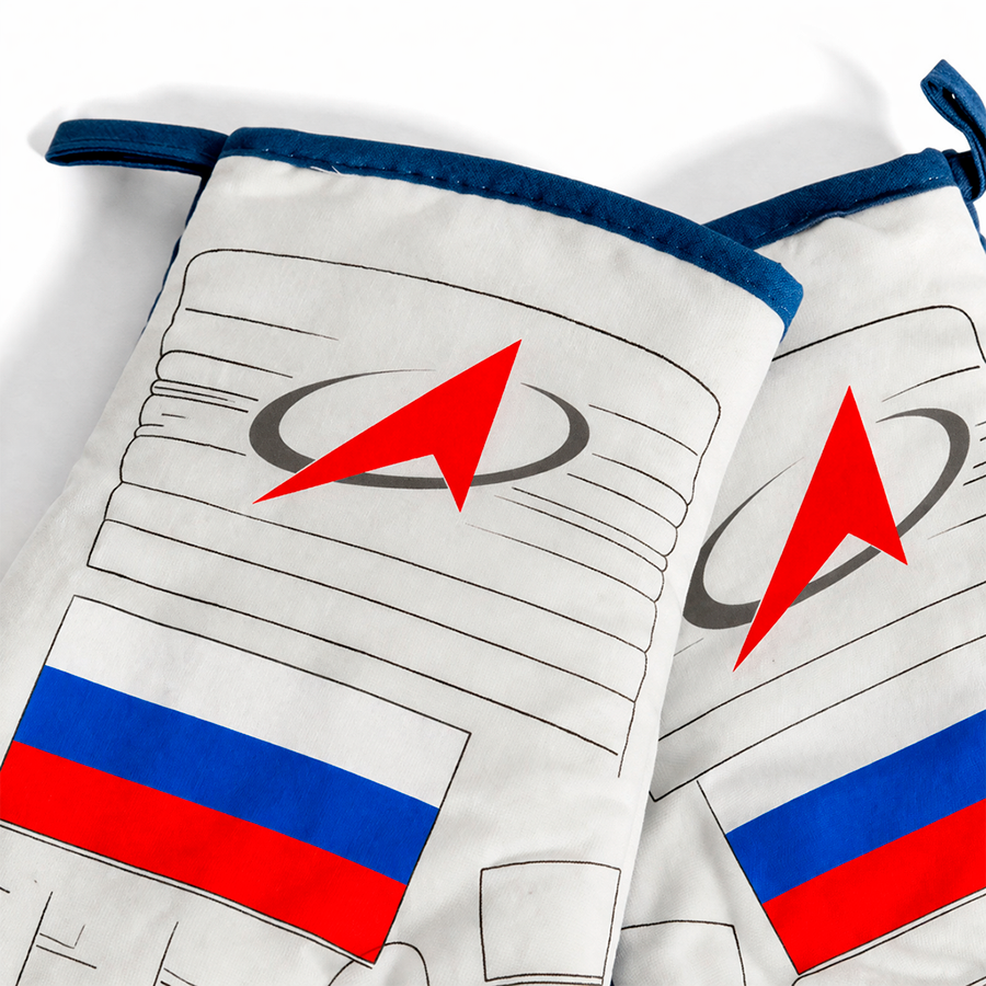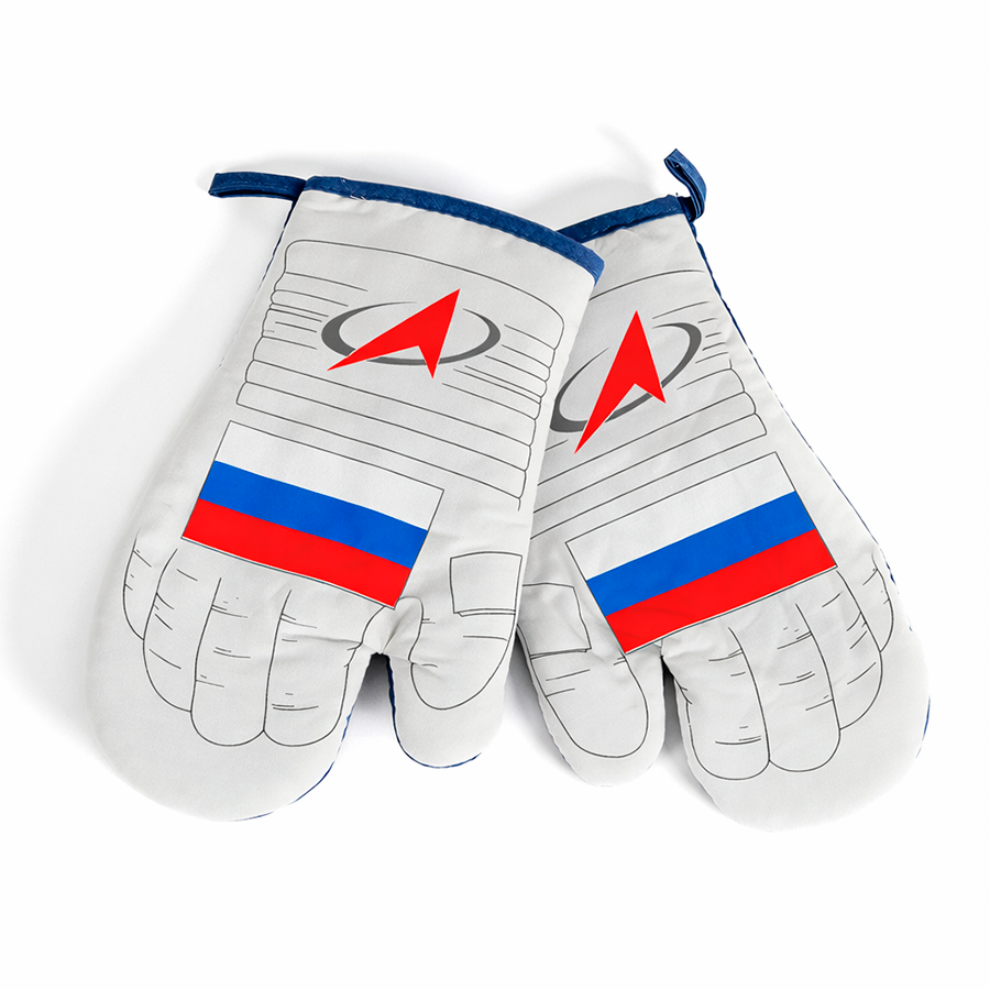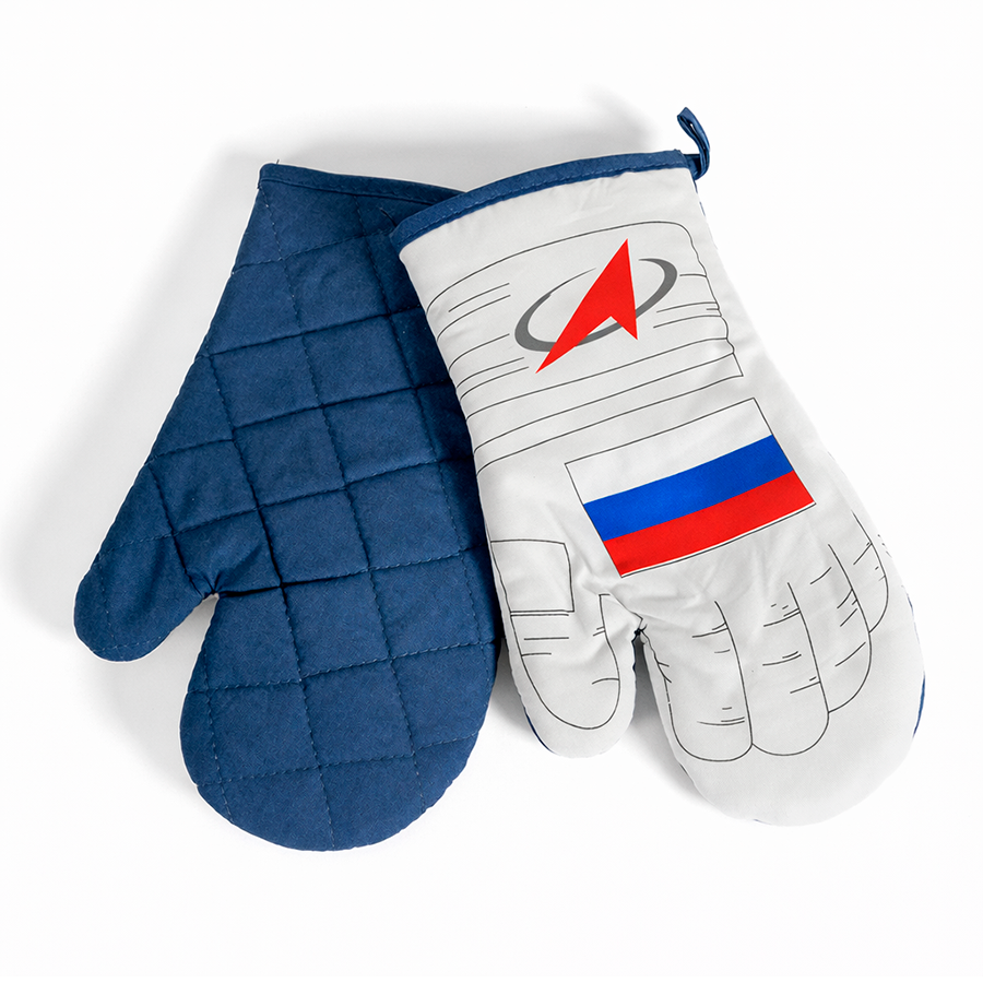 Практичный кухонный аксессуар с оригинальным дизайном в тематике космического снаряжения. Перчатки подходят для безопасной работы с горячей посудой и защищают руки при приготовлении пищи.